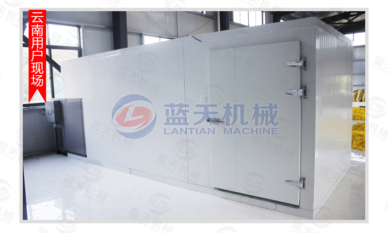 箱式辣椒烘干机视频展示-点击播放 【蓝天辣椒烘干机烘干工艺:】 1、挑选辣椒:先把收购或采摘的辣椒枝叶清理干净。 2、堆放辣椒:辣椒不宜堆放过高,10CM最佳,防止霉变。 3、烘干方式:目前市面上的辣椒烘干机有两种:一种辣椒烘干房、一种带式大型辣椒烘干机。 4、烘干房:先把辣椒放在物料盘上,然后把车子推进烘干房,采用目前先进的热泵辣椒烘干机烘干,全自动控制,只要有电,就不需要人看守,方便快捷。从上面的烘干前和烘干后辣椒颜色可以看出,这个烘干方法还是很有成效的,而且烘干的量还是很大的。有您相中的机型,您可以联系辣椒烘干机厂家蓝天机械。