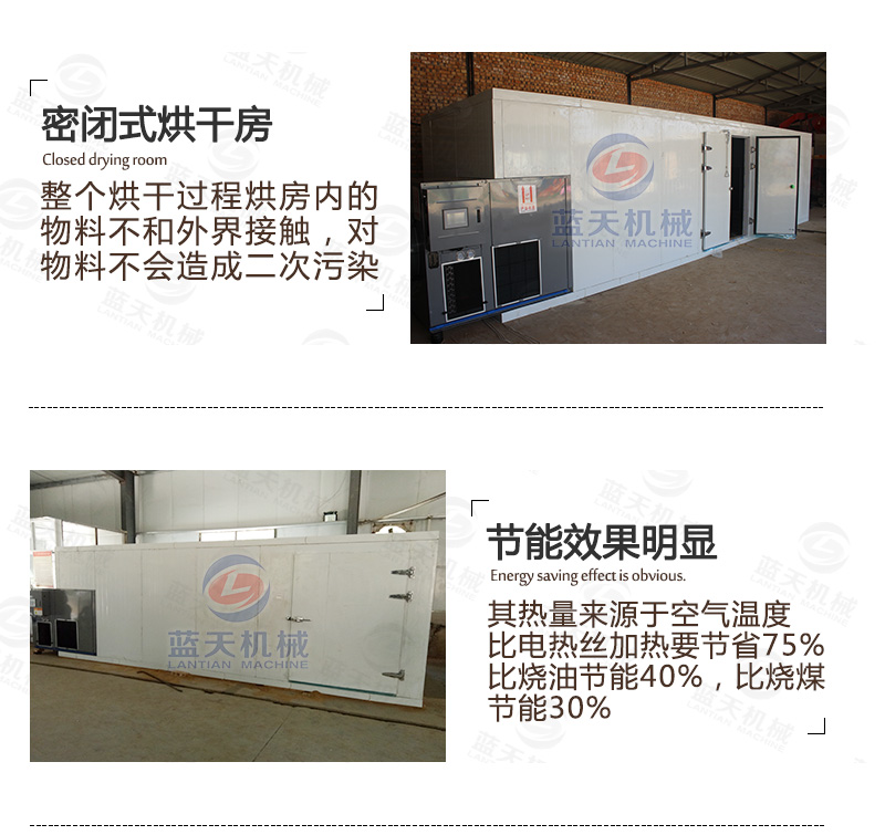 把切好的山药片平铺在烘干架上,打开山药片烘干机,先往箱内送热风,然后将箱内温度加热到50摄氏度,加热30分钟至1.5小时,湿度升高后,开始除湿,使用蓝天山药烘干机除湿的时候可以保持恒温状态。